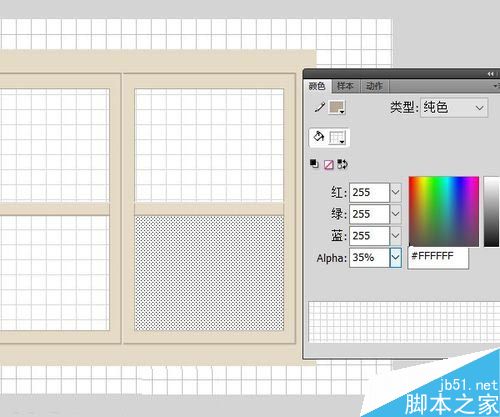 11、填充色白色,透明度35%,為每個關(guān)鍵幀的窗格填充上“玻璃”。
