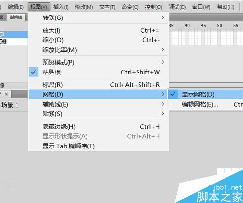 1、整個窗戶的制作需要準(zhǔn)確定位,所以,首先調(diào)出網(wǎng)格:視圖——網(wǎng)格——顯示網(wǎng)格。