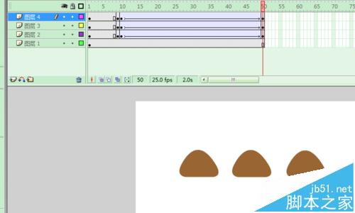 4、新建圖層2、3、4,把元件“碗”分別拖到2、3、4圖層中;