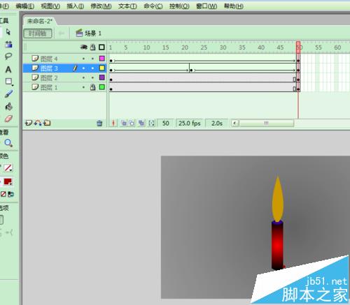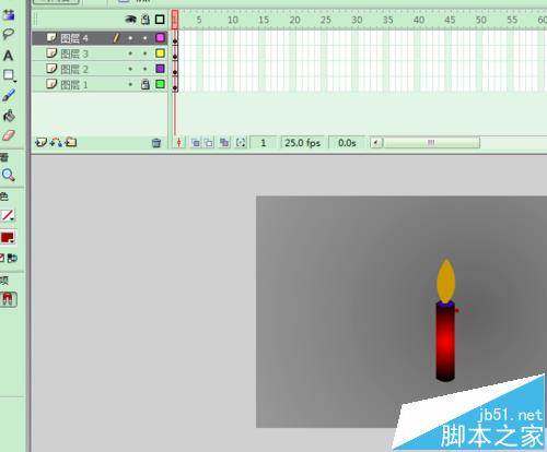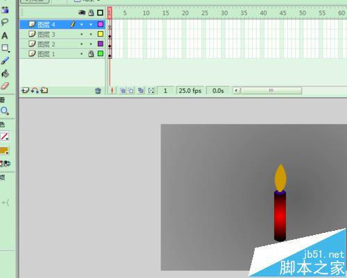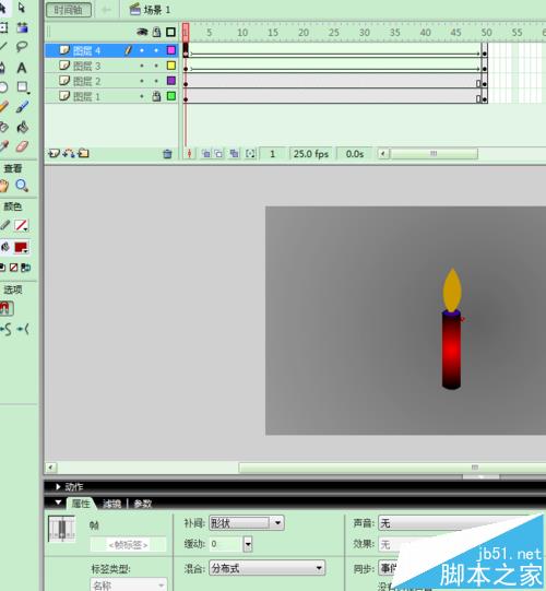 用FLASH模擬燃燒的紅燭,用到形狀補間。