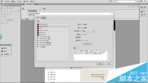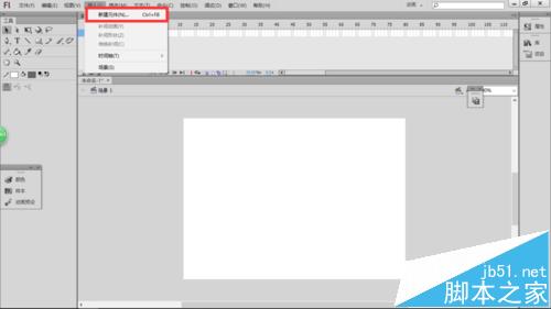 2、按下ctrl+N組合鍵或執(zhí)行菜單欄中的"文件>新建"命令打開(kāi)【新建文檔】對(duì)話(huà)框,在【常規(guī)】選項(xiàng)卡下選擇ActionScript 2.0,單擊"確定"按鈕,即創(chuàng)建一個(gè)文檔,如下圖所示。