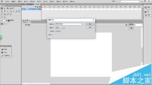 3、執(zhí)行菜單欄中的“插入>新建”命令或按下Ctrl+F8組合鍵,打開(kāi)【創(chuàng)建新元件】對(duì)話(huà)框,更改元件名稱(chēng)為”漂亮的按鈕“,選擇元件類(lèi)型為”按鈕“,單擊”確定“按鈕,如下圖所示。