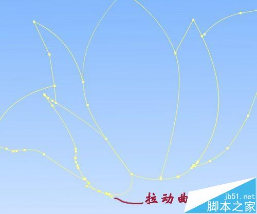 2、A鍵調(diào)出部分選取工具,點(diǎn)擊線條,在出現(xiàn)的節(jié)點(diǎn)上拉動(dòng)曲柄做細(xì)節(jié)調(diào)整,最終繪出花的外形。
