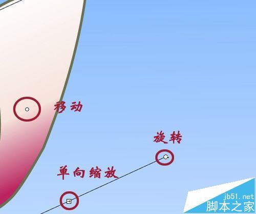 4、F鍵調(diào)出漸變變形工具,對(duì)漸變色做縮放、旋轉(zhuǎn)等調(diào)整,使顏色達(dá)到合適的位置。