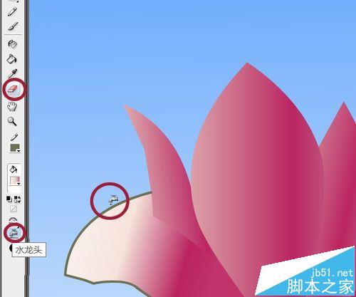 7、橡皮工具選中水龍頭,在線條上點(diǎn)擊,去除線條。