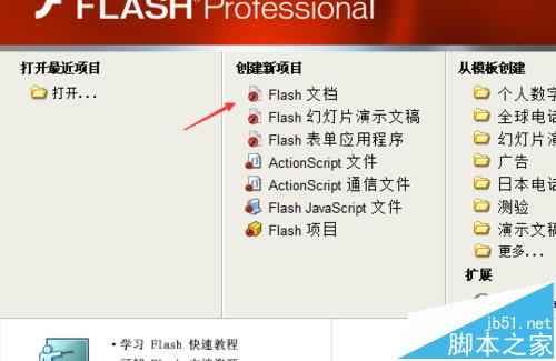 1、打開FLASH軟件,新建一個FLASH文檔;