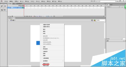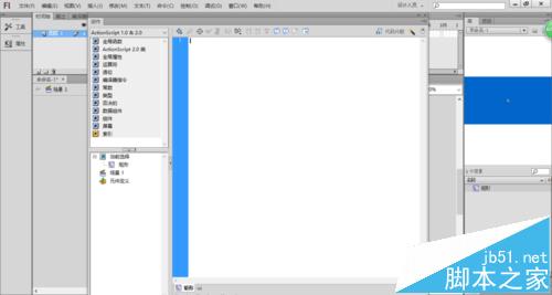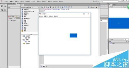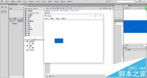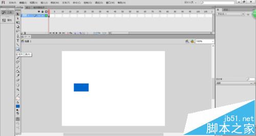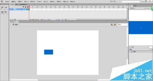 3、雙擊工具箱中的【矩形工具】按鈕,設置描邊和背景色分別為無、藍色,在舞臺上繪制矩形,如下圖所示。