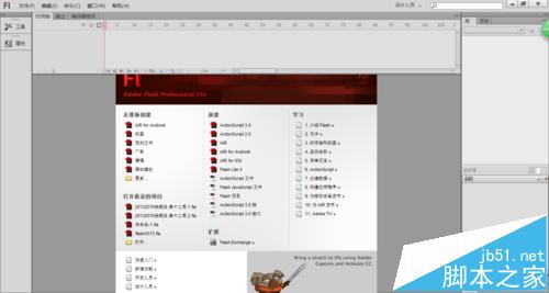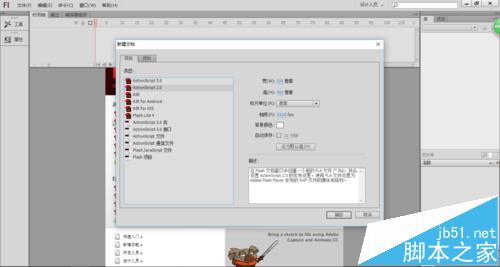 2、按下ctrl+N組合鍵或執行菜單欄中的"文件>新建"命令打開【新建文檔】對話框,在【常規】選項卡下選擇ActionScript 2.0,單擊"確定"按鈕,即創建一個文檔,如下圖所示。