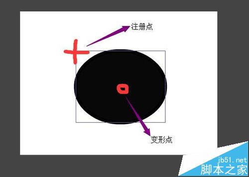 1、一般我們在舞臺上新建形狀的時候,像矩形、圓形,默認的注冊點在圖形的左上角,變形點在圖形的center。