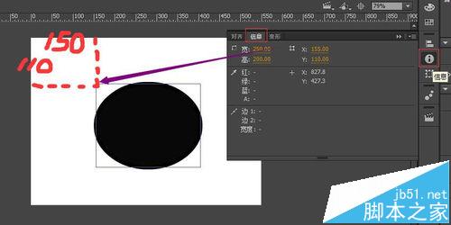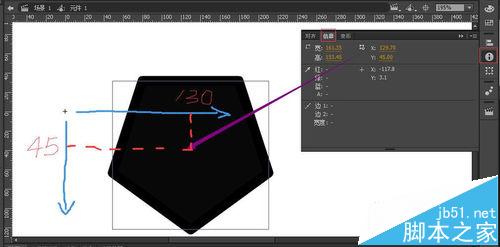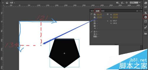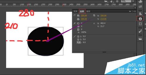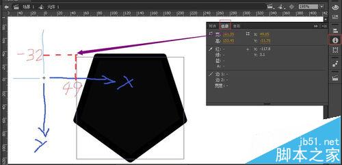 2、怎么驗證?請看,【ctrl+i】打開信息,下圖描述的正是通過變形點設置形狀的位置,原點在畫布的左上角。