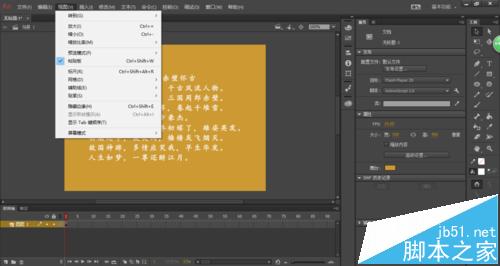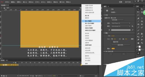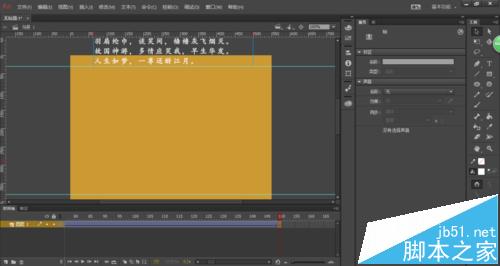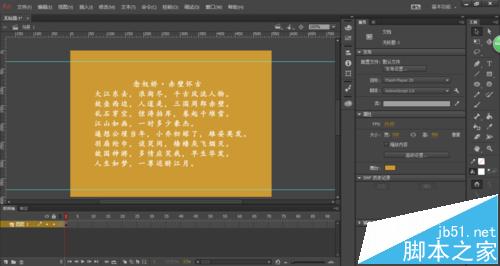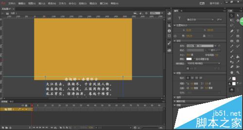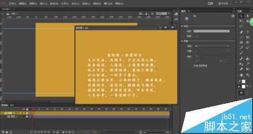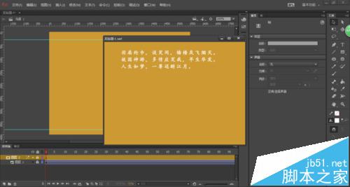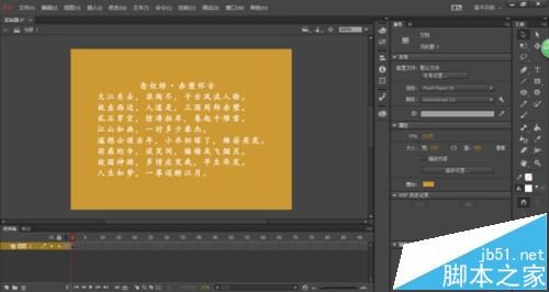 3、單擊工具欄中的"文本工具"按鈕,打開(kāi)屬性面板,將字體大小設(shè)為20,字體系列為Adobe 楷體 Std,字符間距設(shè)為4,字體顏色為白色,在舞臺(tái)上輸入一首宋詞(自選),如下圖所示。