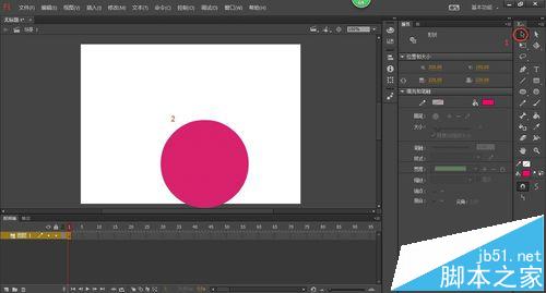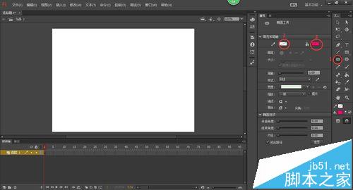 3、單擊工具箱中的"橢圓工具"按鈕,在彈出的屬性面板中設置其筆觸顏色和填充顏色,如下圖所示。