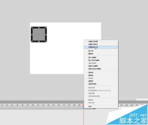 5、在關(guān)鍵幀內(nèi)創(chuàng)建補(bǔ)間動(dòng)畫(huà)(傳統(tǒng)補(bǔ)間就可以)然后早關(guān)鍵幀處將圖畫(huà)移動(dòng)到想要移動(dòng)的位置即可