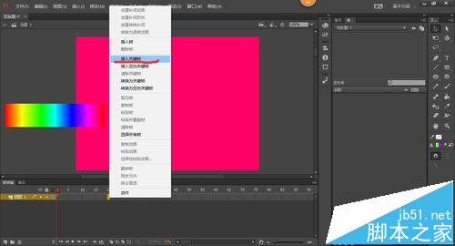 6、右擊圖層1的第20幀,在彈出的快捷菜單中選擇"插入關(guān)鍵幀"命令,將矩形移至別處,如下圖所示。