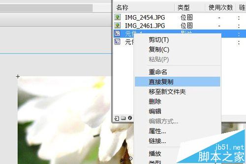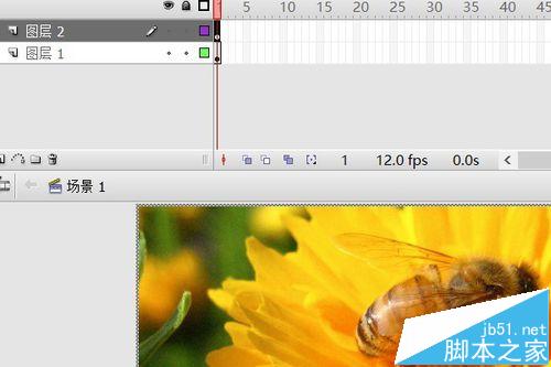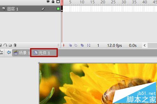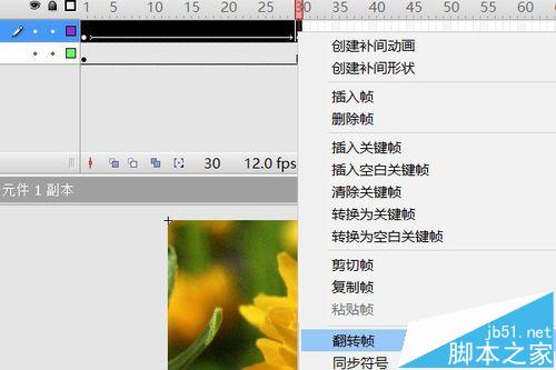 14、欲使動畫更完整,可在庫中復制元件1為副本,將副本中元件2所在層的幀反轉。在場景添加副本元件,使圖片完成逐漸出現再逐漸消失的循環。此時場景中必須有足夠的幀數,以使元件完整播放。