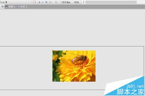 2、從庫里拖出一張圖片,放入圖層一第一幀。