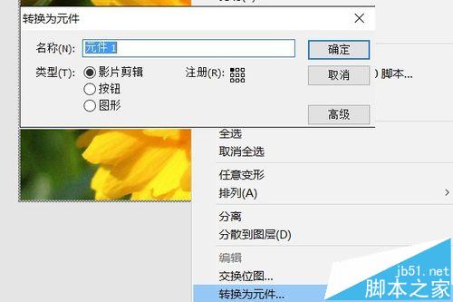 5、圖層2圖片右鍵——轉換為元件——影片剪輯。圖層混合模式只有在影片剪輯和按鈕上才能使用。