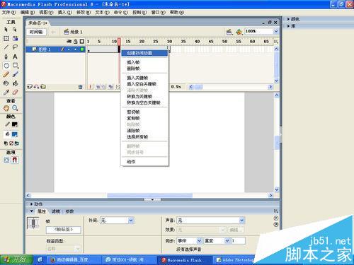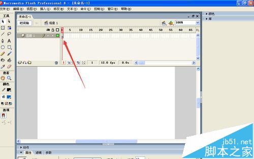 1、在新建文檔后,畫面中是不是空白的?這時在時間軸上的第一幀顯示的是空心圓。這表示這是一個空白關鍵幀。