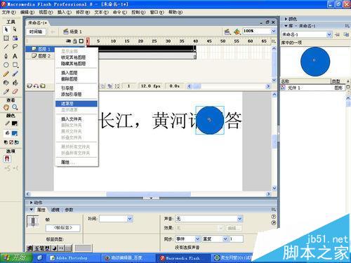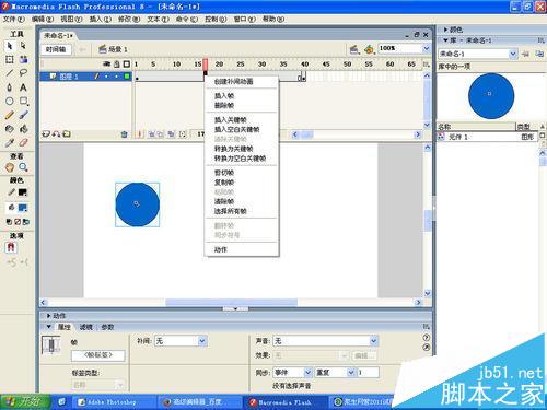 3、并把小球拖動到右邊。在過渡幀右鍵,選擇“創建補間動畫‘