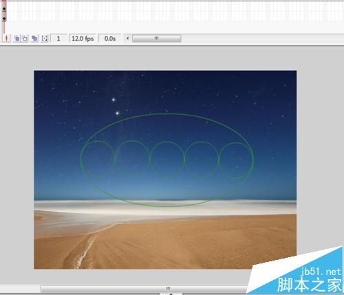 5、在場景中繪制五個并列的正圓,并將五個正圓拖入到橢圓中。