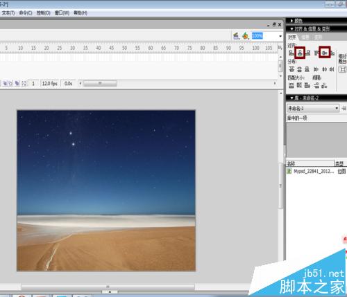 2、將準備好的素材導入到舞臺,執行文件-導入-導入到舞臺命令。并設置大小為550*400,設置全居中(水平中齊、垂直中齊)。