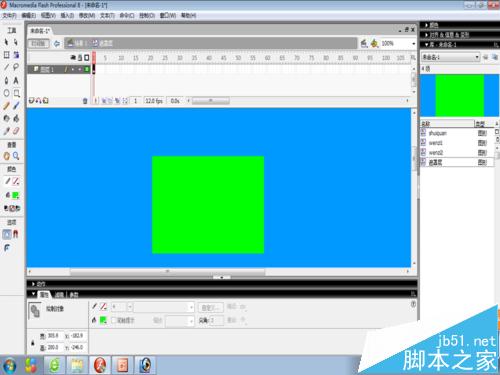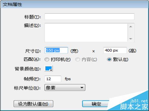 1、新建flash文檔,設置大小為550*400,背景顏色為#0099ff,幀頻為12fps。