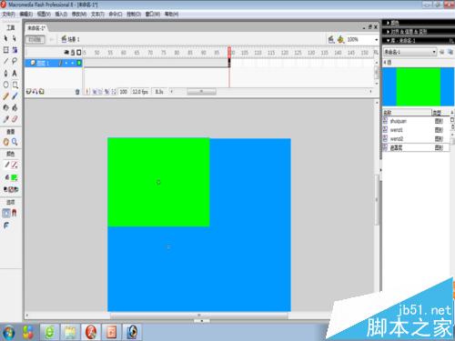 6、執(zhí)行插入-新建元件,新建一個圖形元件,名稱為遮罩層,選中工具箱長方形工具設置填充顏色為#00ff00,筆觸顏色為無,在舞臺繪制一個長方形。