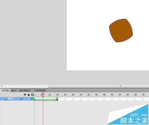 2)在時間軸第15幀按F7鍵插入一個空白關鍵幀,然后在這一幀繪制一個正方形。