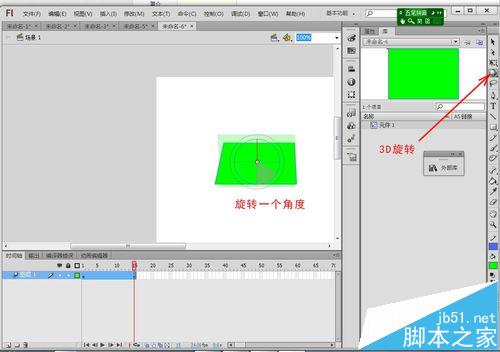 4)選擇工具欄上的旋轉工具,給第一幀或第15幀做一個角度旋轉,此時動畫完成。如圖二所示,按Ctrl+Enter測試即可。