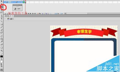 2、挑一張背景圖片拖入flash中,并用任意變形工具調(diào)整圖片大小