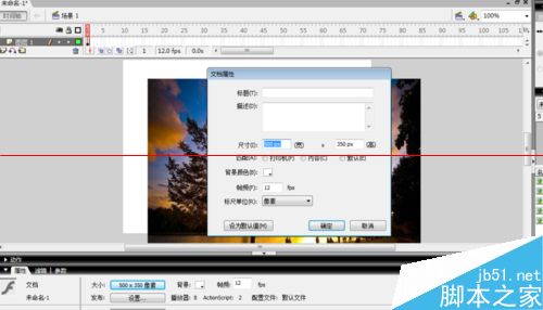 第三步:雙擊舞臺大小,修改為500*350,這里我們是為了方便,大家可以根據實際情況選擇大小