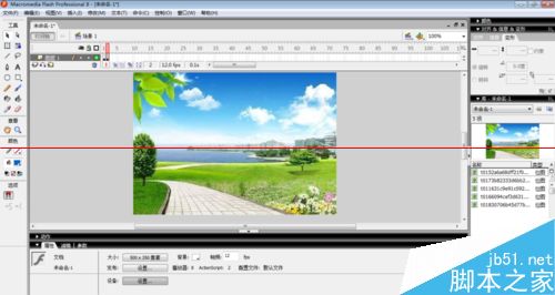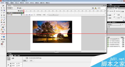 第四步:點擊圖片,拖拉到舞臺上,記住舞臺大小和圖片大小一定要一樣。