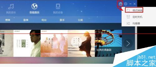 2、這時候我們可以考慮重新找個地方下載需要的歌曲,當然歌曲本身沒啥問題的話,我們可以將歌曲進行格式轉(zhuǎn)換,這里打開百度音樂。打開電腦安裝的百度音樂以后,我們點擊右上角的小工具中的格式轉(zhuǎn)換打開。