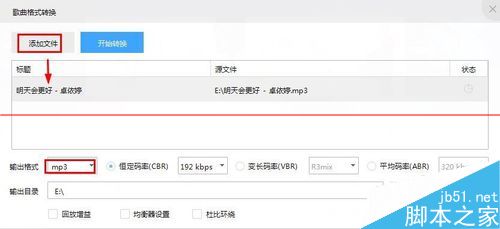 3、這里首先添加需要轉(zhuǎn)換和處理的歌曲,然后點擊輸出格式。