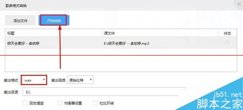 4、這里設(shè)置輸出格式為WAV格式,然后設(shè)置好輸出文件夾后,點擊開始轉(zhuǎn)換。