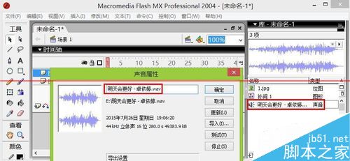 5、這時候我們在FLASH中導(dǎo)入轉(zhuǎn)換后的WAV格式聲音,發(fā)現(xiàn)這里成功了。