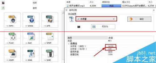 7、當然大家也可以用格式工廠等軟件對Mp3歌曲進行轉(zhuǎn)換,將碼率設(shè)置為128Kb/S,頻率設(shè)置為44100Hz,F(xiàn)lash支持的Mp3歌曲通常是這樣的頻率。