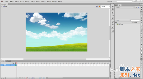 2、選擇菜單欄中的文件—導入—導入到舞臺,導入我們的風景圖片,如果導入的圖片過大,按住shift鍵等比例縮小到合適的大小。