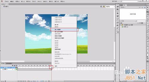 4、選中圖層1,在圖層1的60幀處單擊右鍵,找到插入幀并點擊插入幀,如下圖所示: