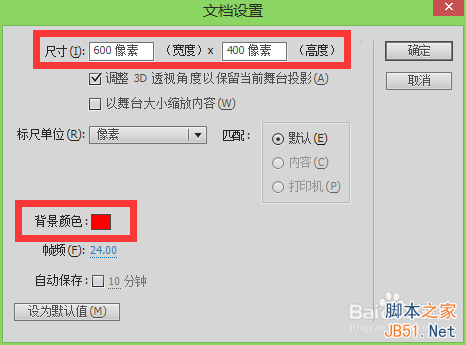 2、新建的默認文檔大小是550*400,而我們需要制作的五星紅旗長寬比為3:2,因此我們來修改文檔大小。選擇菜單欄中的修改—文檔,將尺寸的寬度設置為600像素,背景顏色設置為紅色,點擊確定。