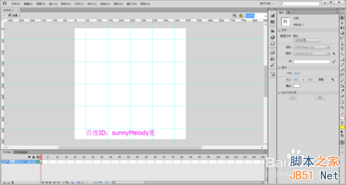 1、打開flash的軟件,新建一個ActionScript 3.0 的畫布。新建的ActionScript 3.0 的畫布大小是550*400,我們將它調整一下,直接修改為500*500。