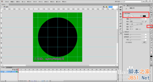 3、我們先進舞臺顏色換一下,大家換一個自己喜歡的顏色就好,小編選擇的是綠色,大家在選擇時最好不要選擇黑白色,因為太極圖是黑白的嘛;再選擇橢圓工具,將筆觸設置為無,填充設置為黑色,按住shift+Alt鍵,鼠標點擊正中心拖出一個正圓。