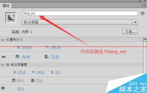 最后就是命名規(guī)則,盡量用一些有意思的名字去命名,開頭不能以數(shù)字來命名,比如2B這種命名是不符合規(guī)則的。一般做為影片影輯,結(jié)尾用_mc,做為按鈕結(jié)尾我們用_btn,比如這里可以把這個方形元件命名為fang_mc