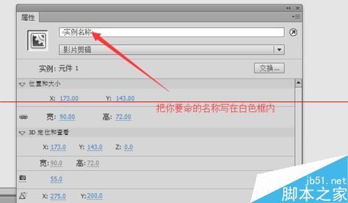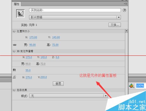 第三步,就是元件的屬性面板,CS6的話屬性面板在右側(cè)。如果看不到屬性面板可以通過菜單欄中的窗口菜單下找,也可以用快捷鍵Ctrl+F3調(diào)出來。