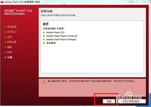 7、安裝完成后點”完成“就安裝好Flash CS3了