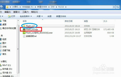 1、解壓Flash CS3壓縮包紅色圈出的壓縮包,解壓到當前文件夾就能得到藍色圈出的Flash CS3文件夾。