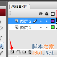 4、然后把事先做好的按鈕放置于其中在與動畫同尾的第二圖層添加關鍵幀