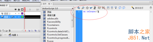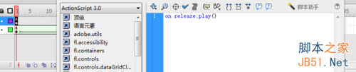 5、之后同樣在按鈕的第一幀處編寫代碼,on play()。