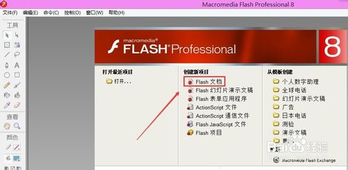 1、雙擊打開桌面上的flash軟件,然后點擊flash初始界面上的Flash文檔創建新項目,如下圖所示。