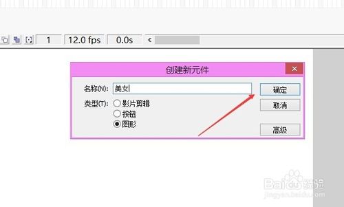 6、在彈出的創建新元件對話框里,輸入元件名稱,選擇元件的類型,這里選擇圖形,然后點擊確定,如下圖所示。